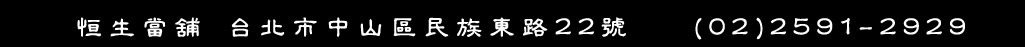 中山區恒生當舖給您最專業最親切的服務,沒有銀行繁瑣的手續,給您快速、簡單便利、低利息的典當流程,成為您去煩解憂的好幫手。